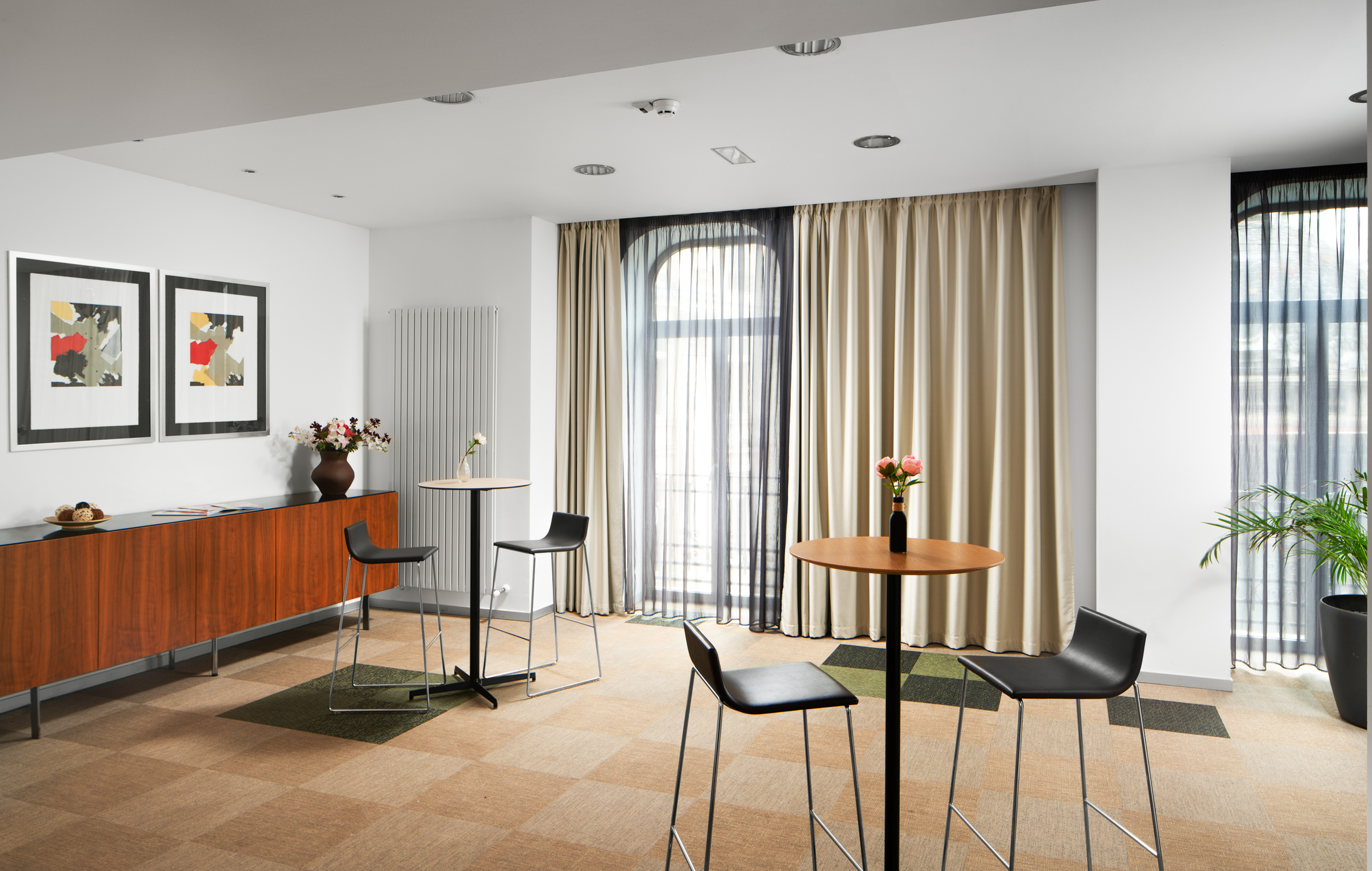 The bright and open lobby layout is paired with contemporary furniture. The ''Plug and Meet'' gathering areas and our cozy meeting room provides modern ergonomic seating perfect for a unique day "at the office". Because today you can work from anywhere.